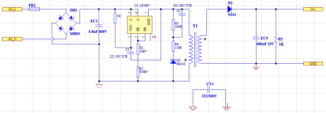 LP3667AH雙繞組2.5W隔離型LED電源方案(原理圖及變壓器資料)
