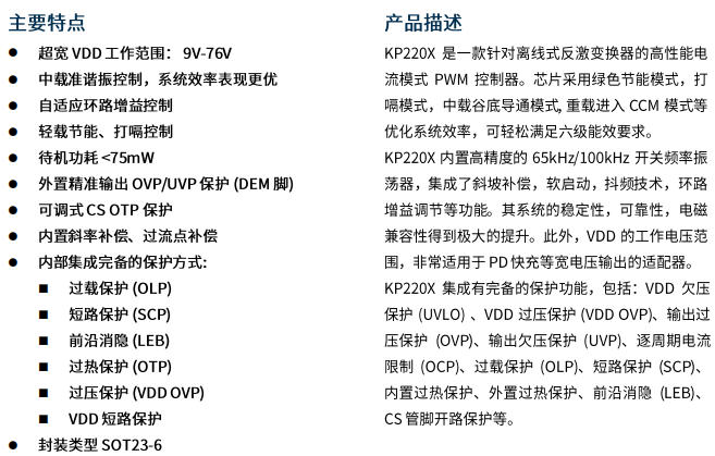 KP2203LGA寬電壓輸出PWM驅動控制器芯片主要特點及電路原理圖介紹