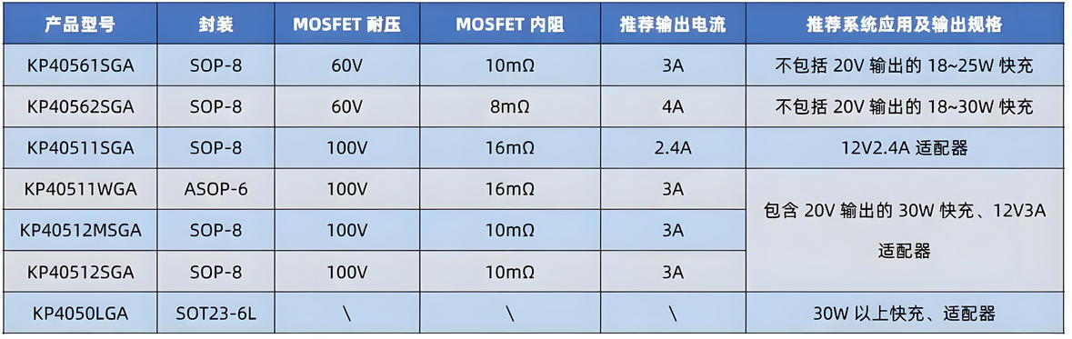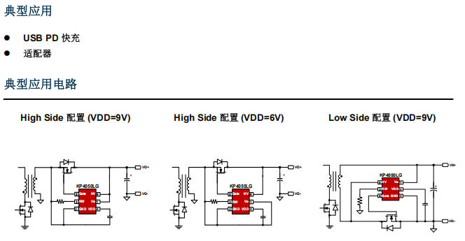 | KP4050LGA | SOT23-6L | ±0.8 A / ±5 A | 180 V 耐壓,支持 High/Low Side | 快充、工業(yè)電源 |