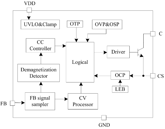 PL3378C同時(shí)具有多種保護(hù)功能:逐周期峰值電流檢測、VDD欠壓/過壓保護(hù)、輸出過壓保護(hù)、輸出短路保護(hù)和過溫保護(hù)等。