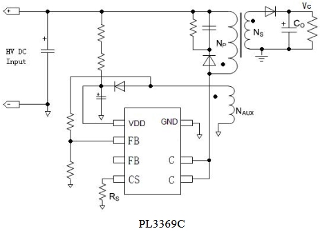 PL3369C 同時具有多種保護功能:逐周期峰值電流檢測、VDD 欠壓/過壓保護、輸出過壓保護、輸出短路保護和過溫保護等。