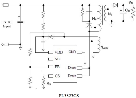PL3323CS 同時具有多種保護功能:逐周期峰值電流檢測、欠壓保護、過壓保護等。